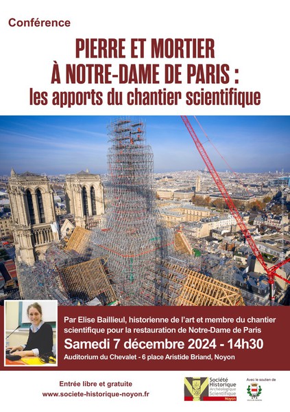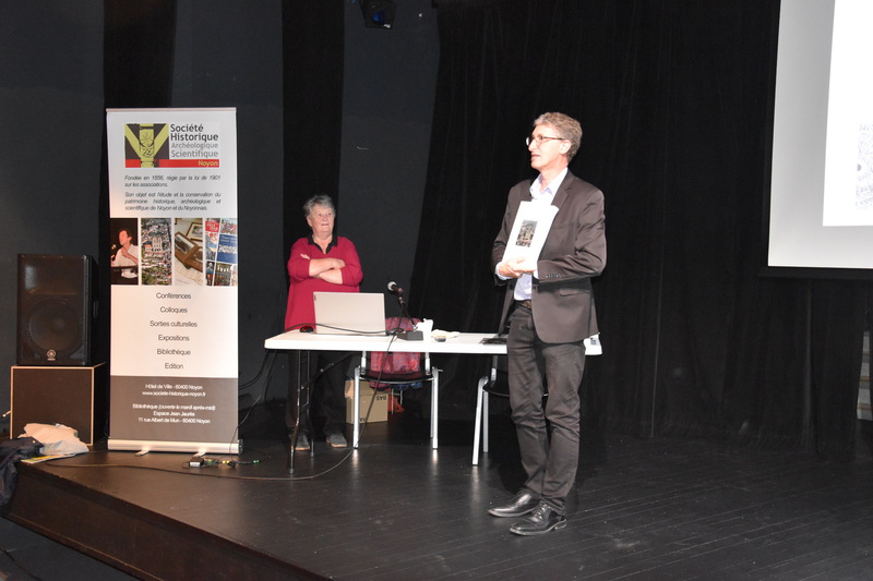 A l'occasion de ses travaux de recherches sur la cathédrale de Noyon, la conférence donnée par Hugo Freby, doctorant en histoire de l’art médiéval à l’université de Picardie Jules Verne, avait pour objet de déterminer l’ampleur des modifications et réparations depuis l’achèvement du gros œuvre aux environs de 1200, de les contextualiser et d’identifier les causes qui les ont motivées, en distinguant les entreprises de sauvegarde, d’embellissement, d’adaptation aux usages liturgiques et les remises en état consécutives aux incendies et aux guerres. C'est donc un regard neuf que nous a proposé ce jeune chercheur sur la cathédrale devant une cinquantaine de personnes présentes.